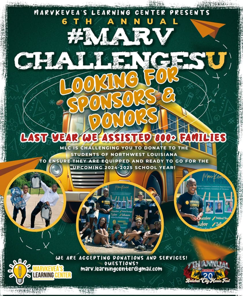 Marvkevea Campbell, owner of Marvkevea’s Learning Center, is hosting his annual Marv Challenges U school supply, an initiative dedicated to supporting the children of northwest Louisiana. The challenge is now in its seventh year.