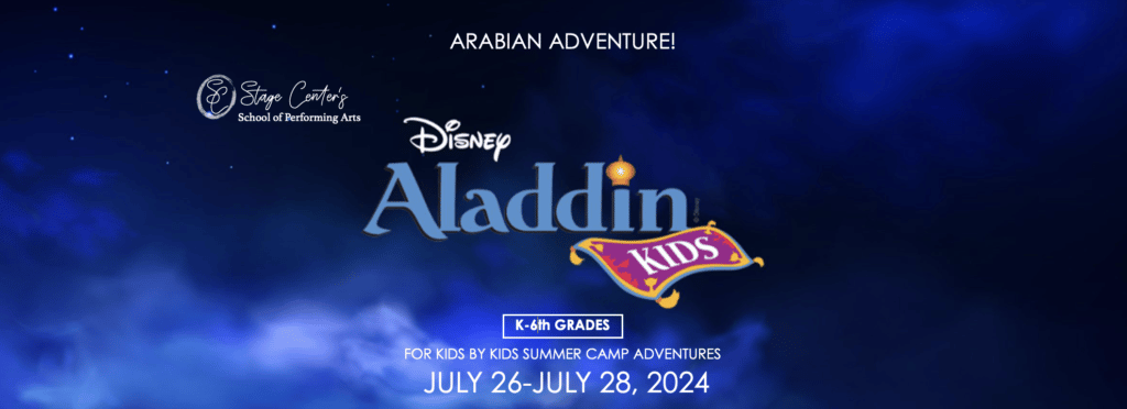 Disney Aladdin (Kids Edition)For Kids By Kids Summer Camp IIJuly 26 at 6:00 PM | June 27 at 2:00 PM & 6:00 PM | July 28 at 2:00 PMBased on the iconic animated film, with an Academy Award-winning score by Alan Menken, Howard Ashman and Tim Rice, Disney’s Aladdin KIDS is sure to send audiences soaring on a flying carpet ride filled with romance and adventure.